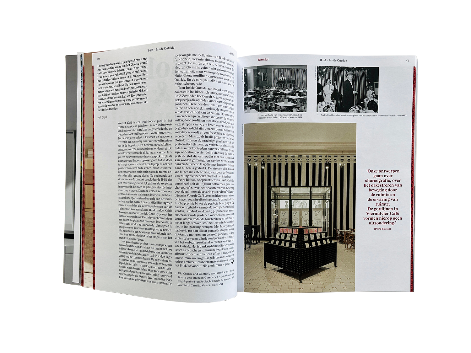 Commissioned article for the Belgian architecture magazine A+ 308 Textile & Textures issue, over the collaborative interior refurbishment project by B-ILD, Inside Outside, Chris Pype Licht and Kahle Acoustics.