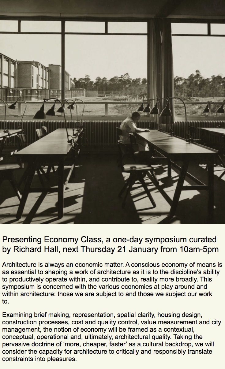 Contribution to Economy Class, a one-day symposium curated by Richard Hall exploring architecture as an economic matter