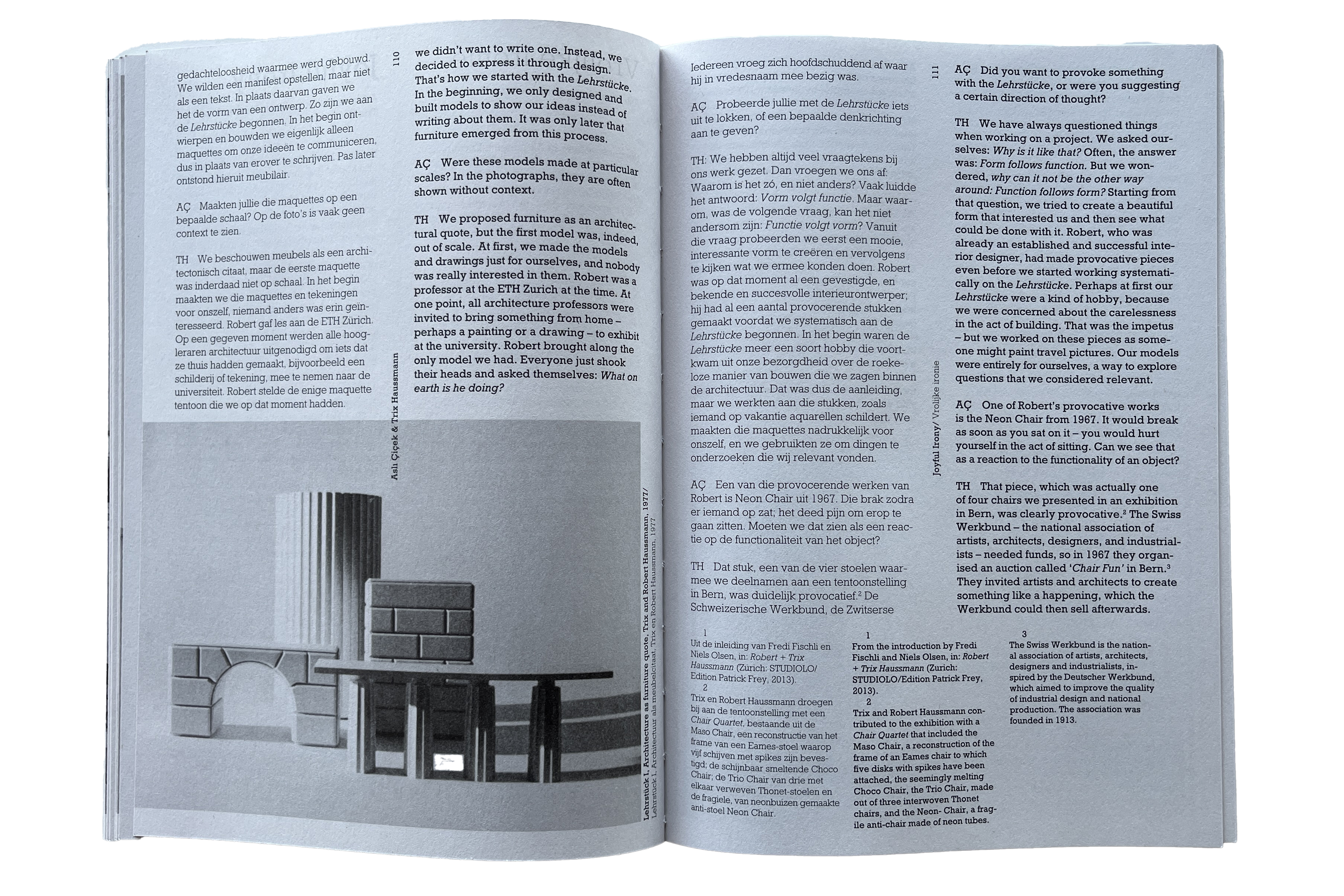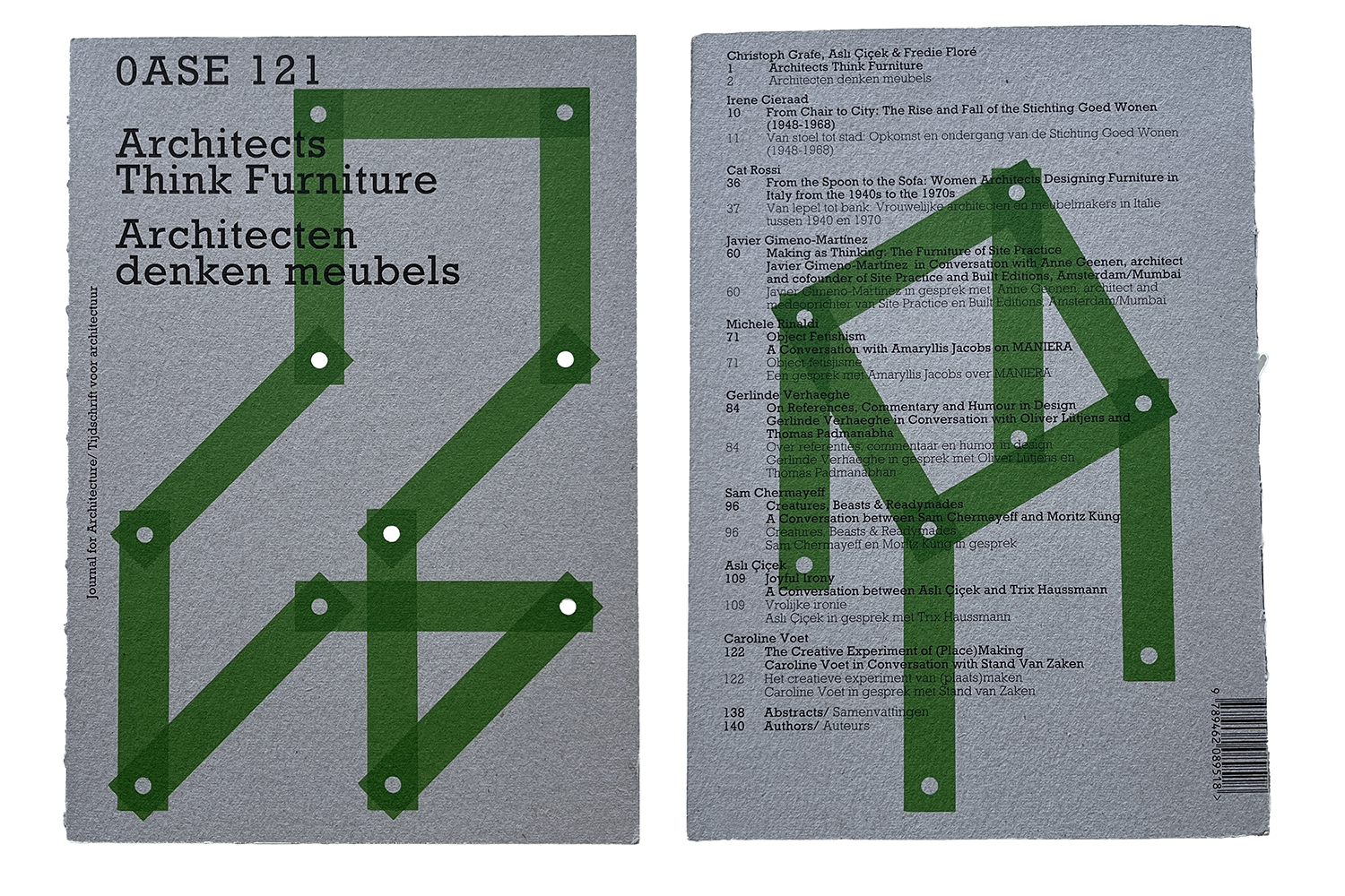 Drawing on historical and contemporary perspectives, OASE 121 traces how furniture entered architectural discourse through the idea of the Gesamtkunstwerk and modernism’s ambition to shape everyday life “from chair to city.” Across essays and conversations, furniture emerges as an experimental and critical space — one that allows architects to work directly with objects, production, and social rituals. OASE 121 positions furniture as a lens through which architectural thinking continues to be tested, questioned and renewed.